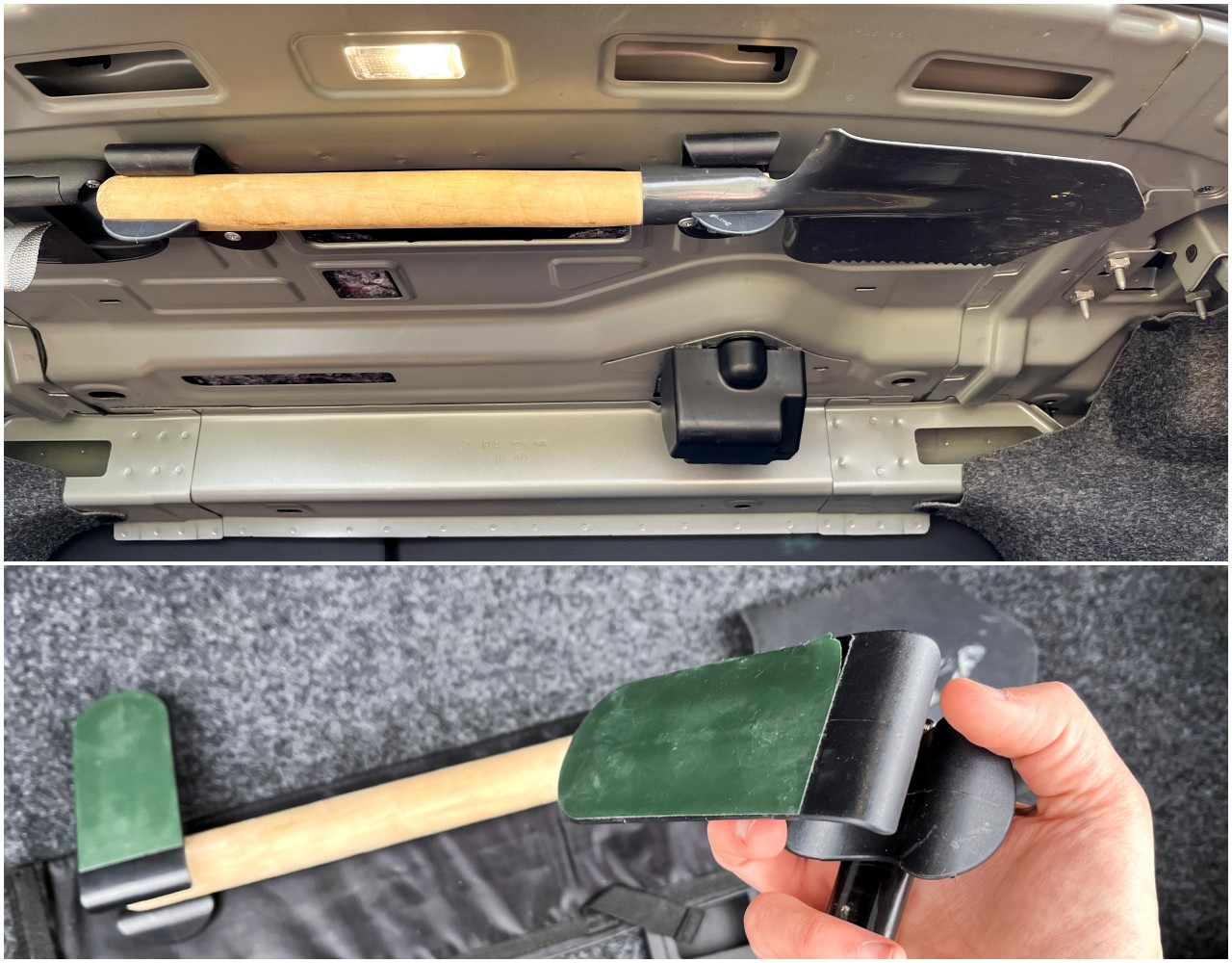 Как пристроить лопату в седане – очень простое решение