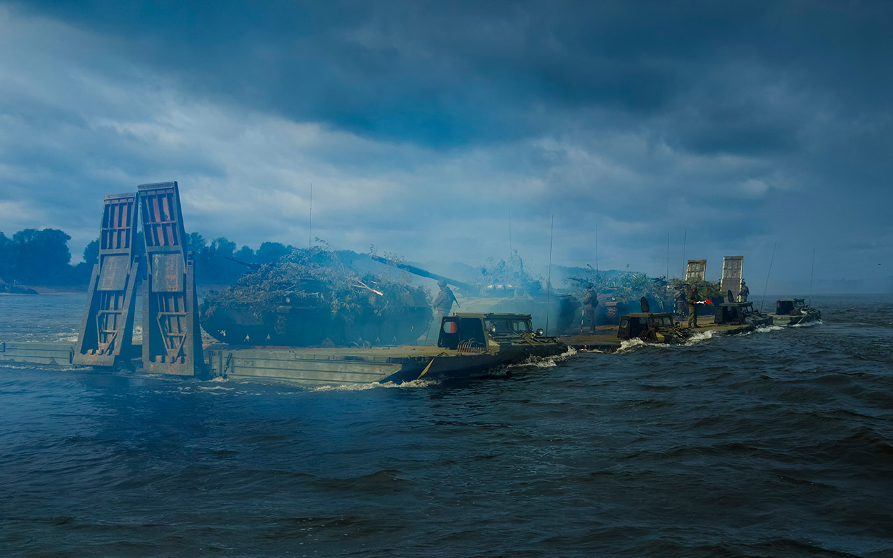 Понтонный парк ПП‑2005 М – самое передовое средство для наведения переправ, поступил на службу в 2018 году. Позволяет переправлять войсковую технику всей существующей номенклатуры, в том числе ракетные комплексы и трейлеры с танками.