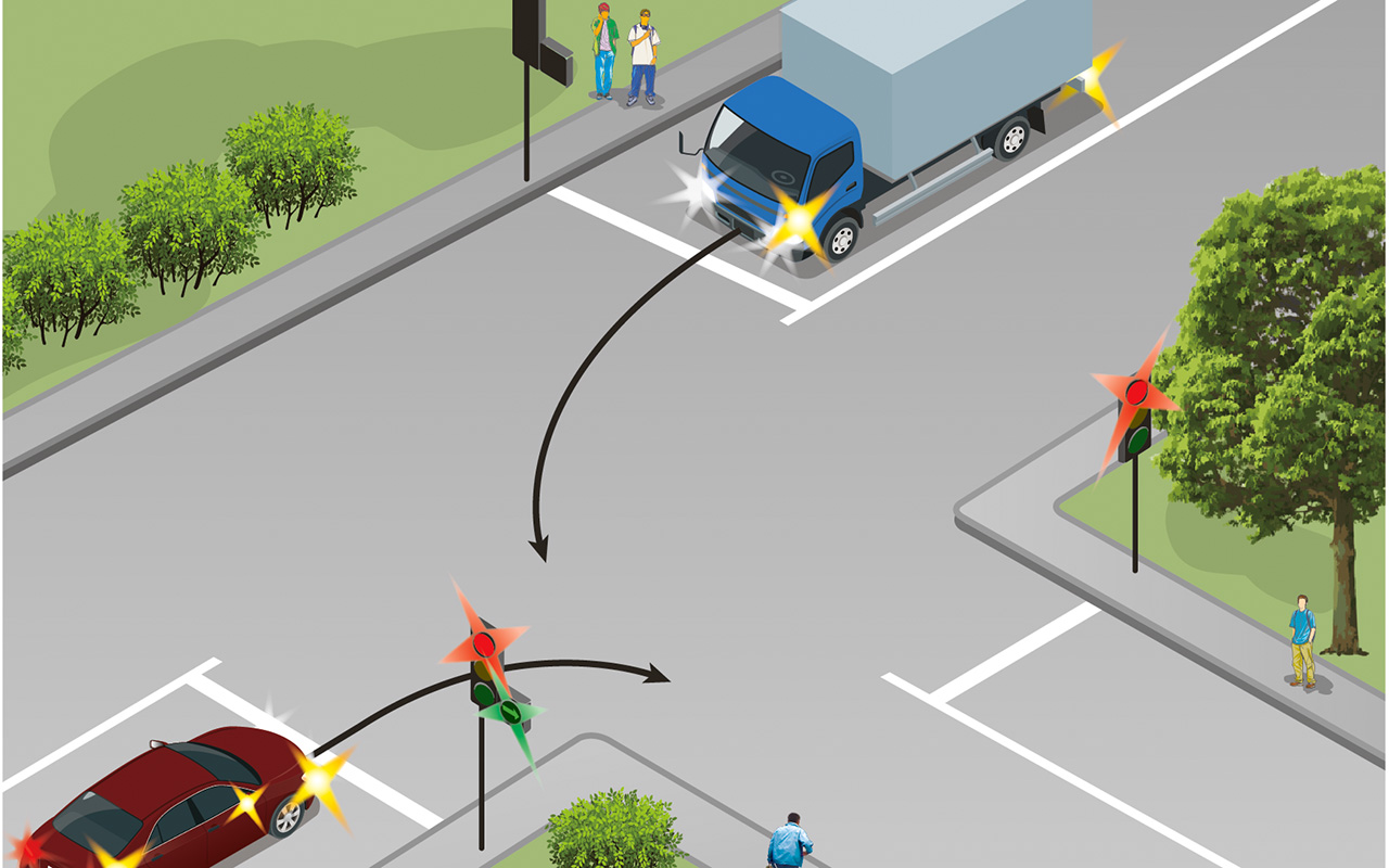 На картинке изображена очень частая предаварийная ситуация, и от ДТП здесь спасет элементарное знание Правил дорожного движения.