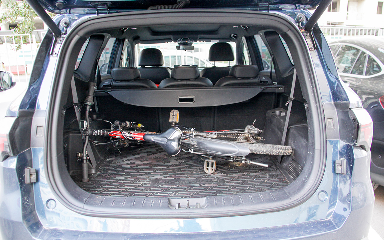 На третьем ряду пассажиров я вожу редко – эти сиденья убраны и образуют ровный пол. А в пятиместном варианте багажник у Okavango просто гигантский. Чтобы достать что-то, лежащее в дальнем углу, мне приходится залезать внутрь. Тут с запасом уместится пара детских велосипедов и даже взрослый со снятым передним колесом.