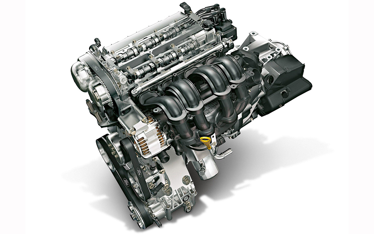 В фордовских моторах серии Duratec болт коленвала держит шкив навесного оборудования, за ним шкив ГРМ, накрытый пластиковым кожухом.