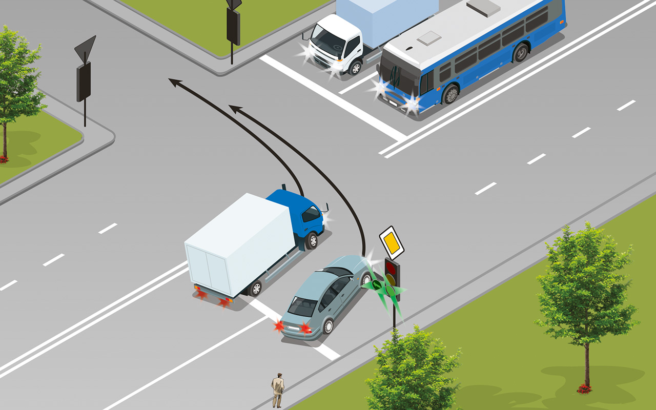 Имеет ли право хитрец, не желающий стоять в очереди на стрелку, лезть перед вами, совершая поворот налево? Как насчет помехи справа?