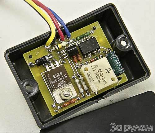 Изделие, показанное на фото, называется "Электронный блок управления электровентилятором системы охлаждения". Внутри - микросхема да пара транзисторов. Приборчик следит за напряжением на датчике температуры двигателя и в нужный момент подает сигнал на внешнее электромагнитное реле, включающее вентилятор. А поскольку основная деталь упомянутого датчика - терморезистор - живет чуть ли не вечно, то и проблема надежности решается сама собой. Отметим - изделие не боится ни короткого замыкания в нагрузке, ни ошибочного подключения к источнику питания.