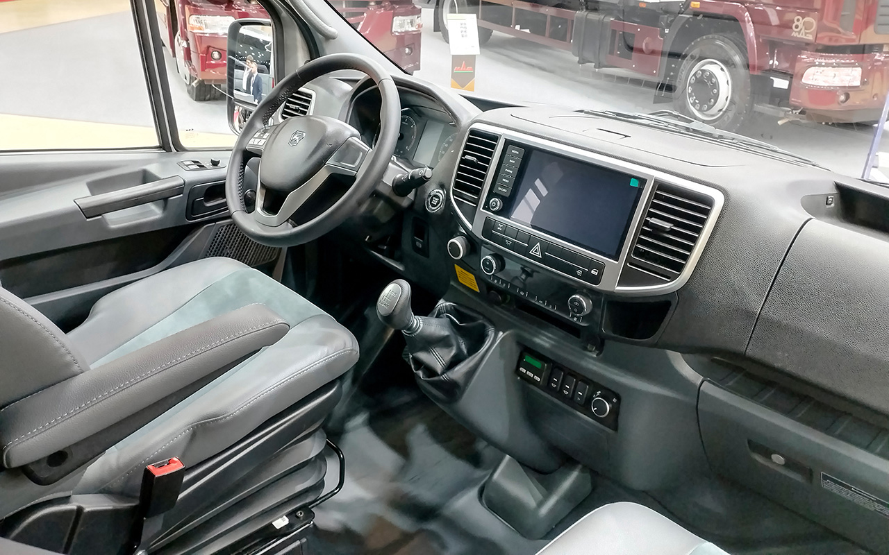 ГАЗель NN 4×4 показали с новым интерьером. Спереди установлены два отдельных кресла. На втором ряду – двухместный диван, третий ряд – трехместный. Диваны можно двигать по направляющим, меняя запас пространства в зависимости от потребностей. Сзади предусмотрена полка, которую можно использовать для размещения багажа или в качестве удлинителя при раскладывании сидений в большое спальное место.