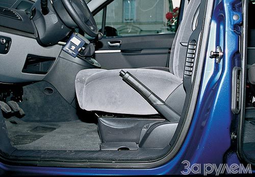 Кстати, об остановках. В условиях стесненного городского пространства сдвижные задние двери оказывают неоценимую услугу - им, в отличие от распашных, не нужно места, чтобы выпустить пассажиров. В случае необходимости водитель может воспользоваться задней дверцей, пройдя по совершенно ровному полу между передними креслами через салон. Именно для этого рычаг переключения передач вывели на переднюю консоль, а ручной тормоз оказался слева от водительского сиденья. Мне это показалось непривычным, к тому же при пользовании водительской дверью торчащий вверх ручник создаст неудобство.