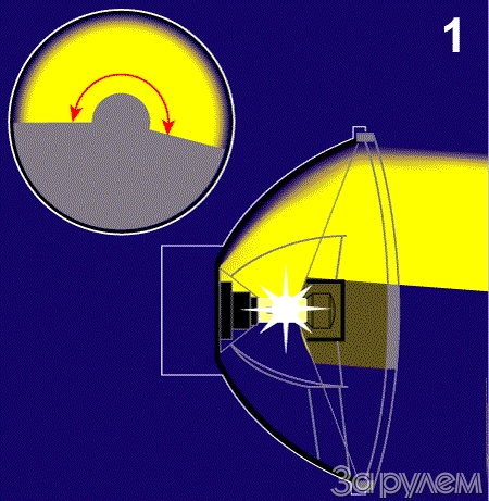 В новых фарах для освещения дороги используется уже почти весь световой поток лампы, за исключением разве что ее торца, прикрытого непрозрачным колпачком, - свет от него в любом случае слепил бы встречных водителей.