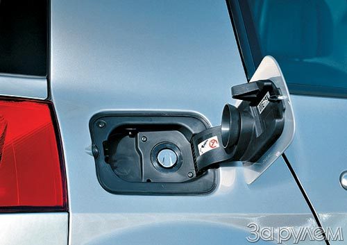 И вот французы применили новинку в серийных "меганах", "эспасах" и "вель сатисах". У них пробка встроена в крышку лючка - достаточно открыть его одной рукой, чтобы другой тут же вставить пистолет. Столь же быстро и удобно происходит обратный процесс. Но, может, забывчивый водитель так и уедет с открытым бензобаком, обогащая окружающую среду ароматическими углеводородами? Ничуть не бывало. Во-первых, в горловине есть еще клапан, закрывающий отверстие, когда пистолет вынут. А во-вторых... при незакрытом лючке просто не заведется двигатель, а световое табло сообщит водителю, что искать сервис-центр в данном случае вовсе не нужно.