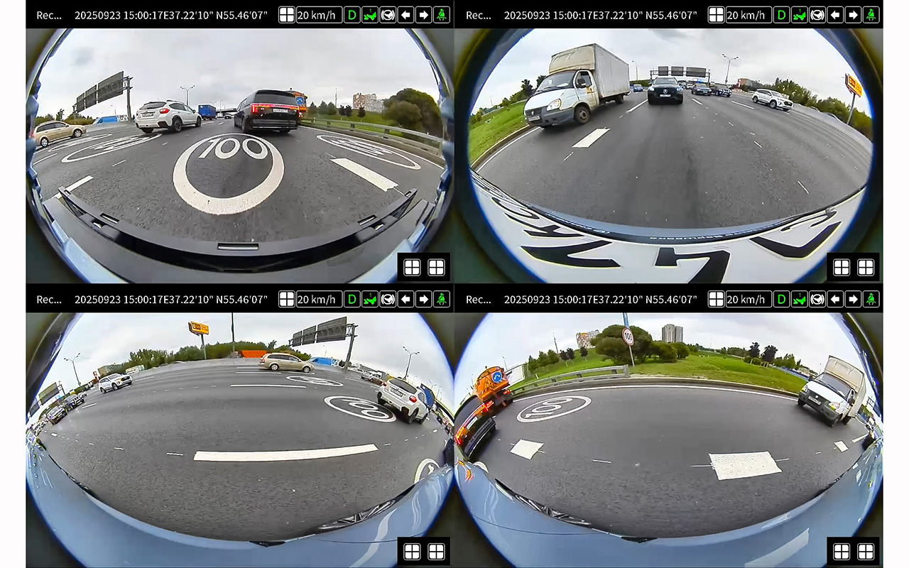 Более того, таких вещей, как потоковое видео с задней камеры или шумоизолирующие передние стекла, в большинстве конкурентов за те же 3,9–4,5 млн рублей нет. Как и встроенного видеорегистратора, автоматически пишущего картинку сразу с четырех наружных камер. В изображение интегрированы координаты, данные о скорости, нажатии газа или тормоза, включении поворотников.