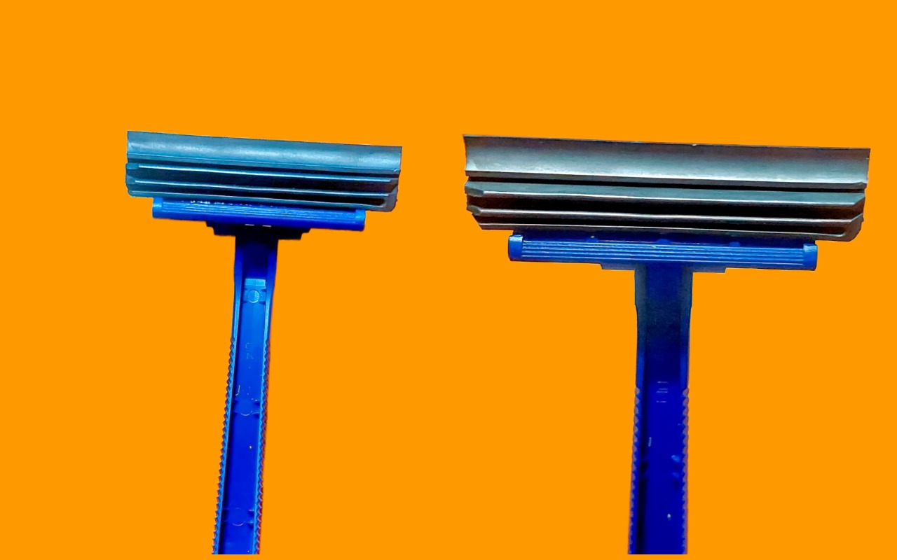 Решил смастерить сгон воды с боковых зеркал. Разобрал одноразовый станок для бритья, сняв лезвия. Станок по размерам подошел к толщине основания резинки – 8 мм. Обезжирил растворителем резинку и станок. Склеил секундным клеем.
