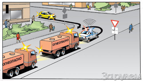 I. На автомобиле ДПС включен специальный звуковой сигнал, а на грузовиках - фары ближнего света. Каким по счету проедет перекресток водитель легкового автомобиля?