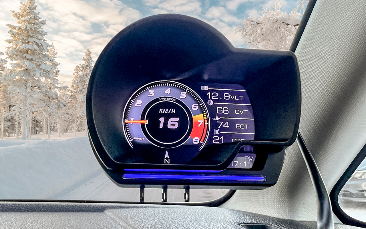 | Примерная цена 2800 ₽ Информацию прибор получает по OBD-II и со спутников GNSS. Может отображать скорость и пройденное расстояние, показывать температуру двигателя, напряжение в бортсети и частоту вращения коленвала, сообщать о расходе топлива, кодах неисправностей и тому подобном. При установке на панель приборов перекрывает обзор, проектора на стекло (HUD) и в помине нет. Может работать с протоколами OBD-II после 2008 года. Серьезному водителю не очень подходит, но для легкого тюнинга – вполне. |