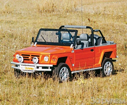 "Сталкер" пока представлен с летней, легко складывающейся крышей-бикини, способной лишь защищать голову водителя и трех пассажиров от солнечных лучей. Предусмотрены жесткий (тоже легкосъемный) верх для зимы и тент с утеплителем для межсезонья. Снаряженная масса получилась чуть более 750 кг - неплохо для четырехместного автомобиля!