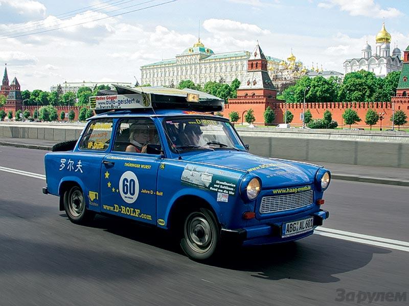 Известный немецкий путешественник и фанат «Трабанта» Рольф Беккер отправился из Германии в Китай на Олимпиаду. В июне его автомобиль побывал в Москве в гостях у «За рулем». А осенью мы рассчитываем познакомить читателей с подробностями путешествия через всю Евразию со скоростью около 80 км/ч. Медленно? Зато есть время все увидеть и набраться впечатлений. Главное, чтобы «Траби» не подвел. Впрочем, как раз такие дороги, какие ведут из Москвы на восток, должны быть привычными для его подвески родом из семидесятых.