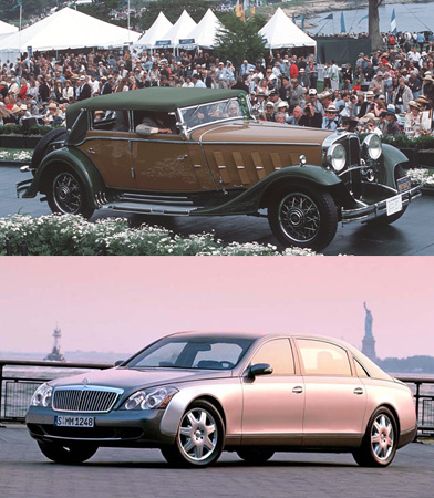 В центре внимания главный флагман концерна Maybach. Он представлен моделью Maybach Zeppelin DS8 образца 1932 года (на фото вверху) и современным Maybach 62 (внизу).