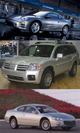 Завод Mitsubishi в Иллинойсе выпускает седаны Galant, купе Eclipse (на фото вверху) и внедорожники Endeavor (в середине), а также Dodge Stratus и Chrysler Sebring (на фото внизу), которые сходят с конвейера по договоренности с бывшим стратегическим партнером DaimlerChrysler.