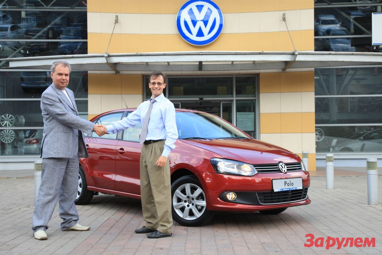 Этот автомобиль был приобретен редакцией "За рулем" для ежегодного марафона "60 часов", чей старт намечен на середину августа. Традиционно в нем испытываются самые интересные новинки российского рынка. В соперники Polo записаны Renault Sandero и Fiat Linea. Сейчас все три автомобиля проходят интенсивную обкатку перед началом труднейшего заезда. Торжественную передачу автомобиля ознаменовало рукопожатие PR-менеджера российского представительства Volkswagen Андрея Гордасевича и заместителя главного редактора журнала "За рулем" Дмитрия Федорова.