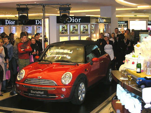 25 февраля в торговом центре "Артиколи Весна" состоялась премьера Mini Cabriolet. Став кабриолетом, Mini остался четырехместным, а его новая крыша автоматически складывается за 15 секунд. Заднее стекло обогреваемое, что весьма практично при эксплуатации в России, а стекла опускаются и поднимаются автоматически при складывании/подъеме тента. Безопасность кабриолета Mini обеспечивают дополнительная силовая защита кузова, встроенные в раму ветрового стекла стальные трубы и задние дуги безопасности. Для предотвращения опрокидывания Mini Cabrio оснащен системой CBC (Cornering Brake Control). До 100 кмч автомобиль разгоняется за 7,2 с.