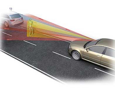 Датчик размещен в тыльной части зеркала заднего вида и работает в инфракрасном режиме, невидимом для человека. Он сканирует пространство перед автомобилем с частотой 200 Гц и под углом 8 градусов по вертикали и 32 градуса по горизонтали. Трехмерное изображение обеспечивается применением сразу двух излучателей.