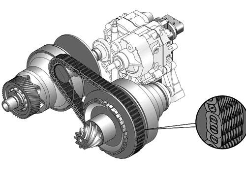 Проблему удалось решить в сотрудничестве с компанией LuK, которая предложила свою версию передаточного ремня, собранного из 150 звеньев и 1025 скрепляющих пластин. Каждая из них может выдержать нагрузку в 8 тонн.