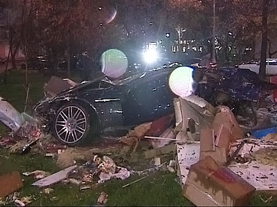 В результате сильнейшего столкновения от киосков практически ничего не осталось. Aston Martin восстановлению не подлежит.