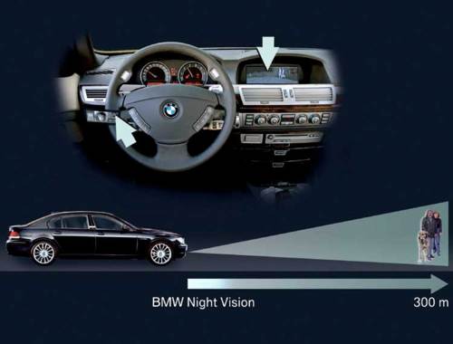 BMW обещает с четвертого квартала оснащать свои старшие модели 7-й серии биовизорами, которые в условиях недостаточной видимости в состоянии распознавать присутствие человека или животного на дороге за 300 метров.