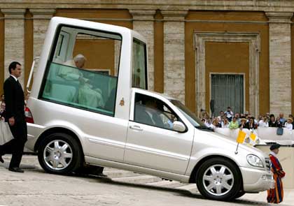 Глава Ватикана Бенедикт XVI в качестве основного средства передвижения в рамках дней католической молодежи в Кельне выбрал бронированный папамобиль предшественника на базе Mercedes M-Klasse.
