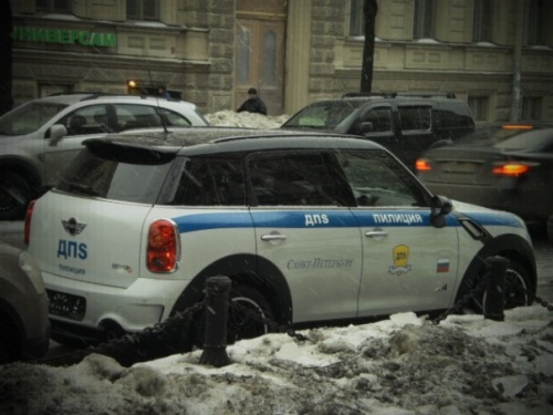 В Санкт-Петербурге обнаружен MINI Countryman, раскрашенный в цветовой гамме автопарка правоохранительных органов, с надписями «ДПS» и «Пилиция».