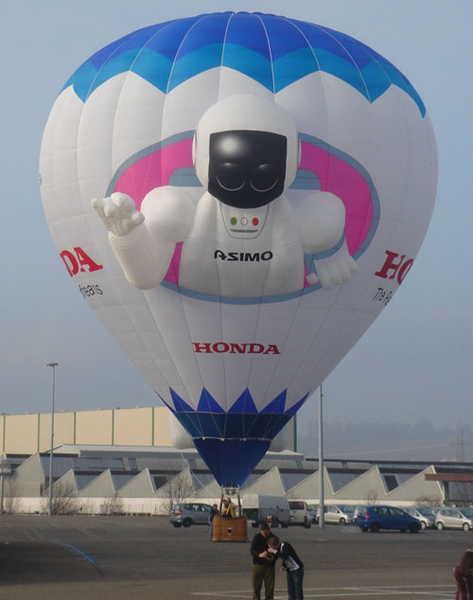 Видимо, с целью продвижения своего бренда фирма решила поучаствовать в швейцарском фестивале воздушных шаров в качестве официального спонсора. И конечно, не упустила возможности запустить ввысь надувного «робота» «Азимо».