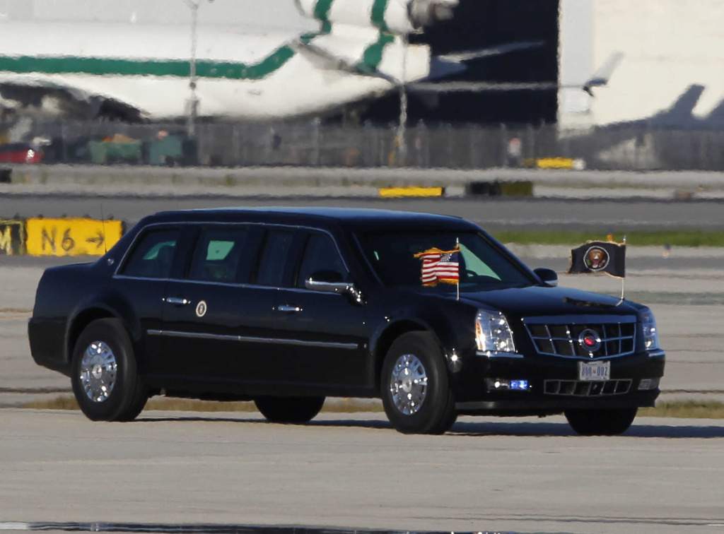 Президентский лимузин сделан на заводе GM в Детройте, это бронированная машина, напичканная электронными средствами связи, ее вес превышает 4 тонны. Еще в прошлом году президент заявлял, что обращался в спецслужбы с запросом о возможном переводе своего автомобиля на гибридные технологии, однако тот запрос был отклонен.