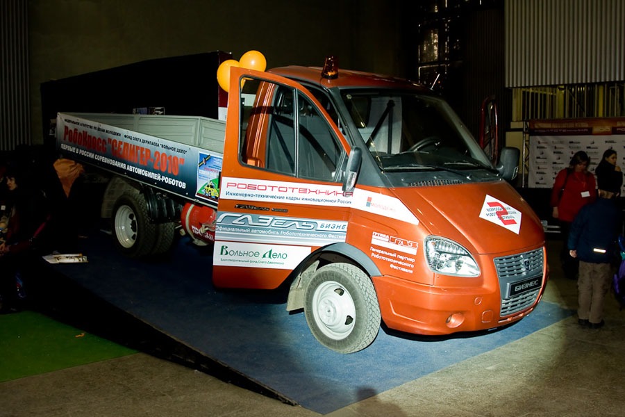 Роботизированная «ГАЗель» без участия водителя преодолела участок пересеченной местности. Автомобиль, управляемый компьютером, привезли на Международный молодежный промышленный форум «Инженеры будущего-2011». Стоимость оборудования «робота» вместе с его установкой – около 150 тыс. рублей.