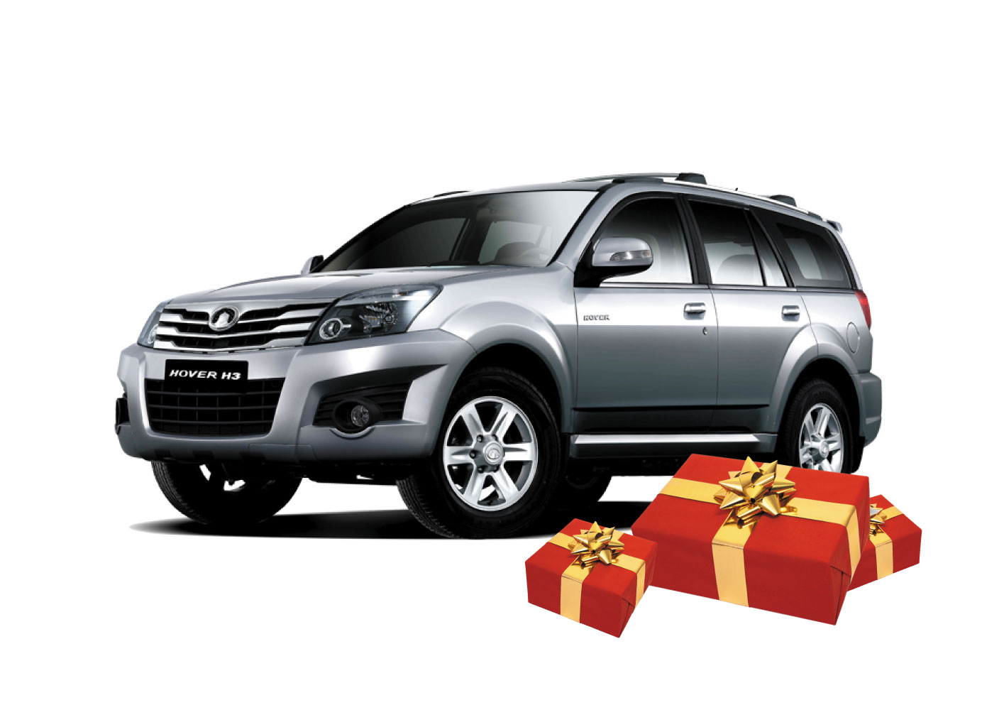 В дилерской сети Great Wall Motors в России стартовала акция «Подарок на 20 000 рублей при покупке Hover H3». Новые владельцы вседорожника могут выбрать один из трех комплектов дополнительного оборудования и воспользоваться бесплатной установкой подарочных опций на свой Hover H3.