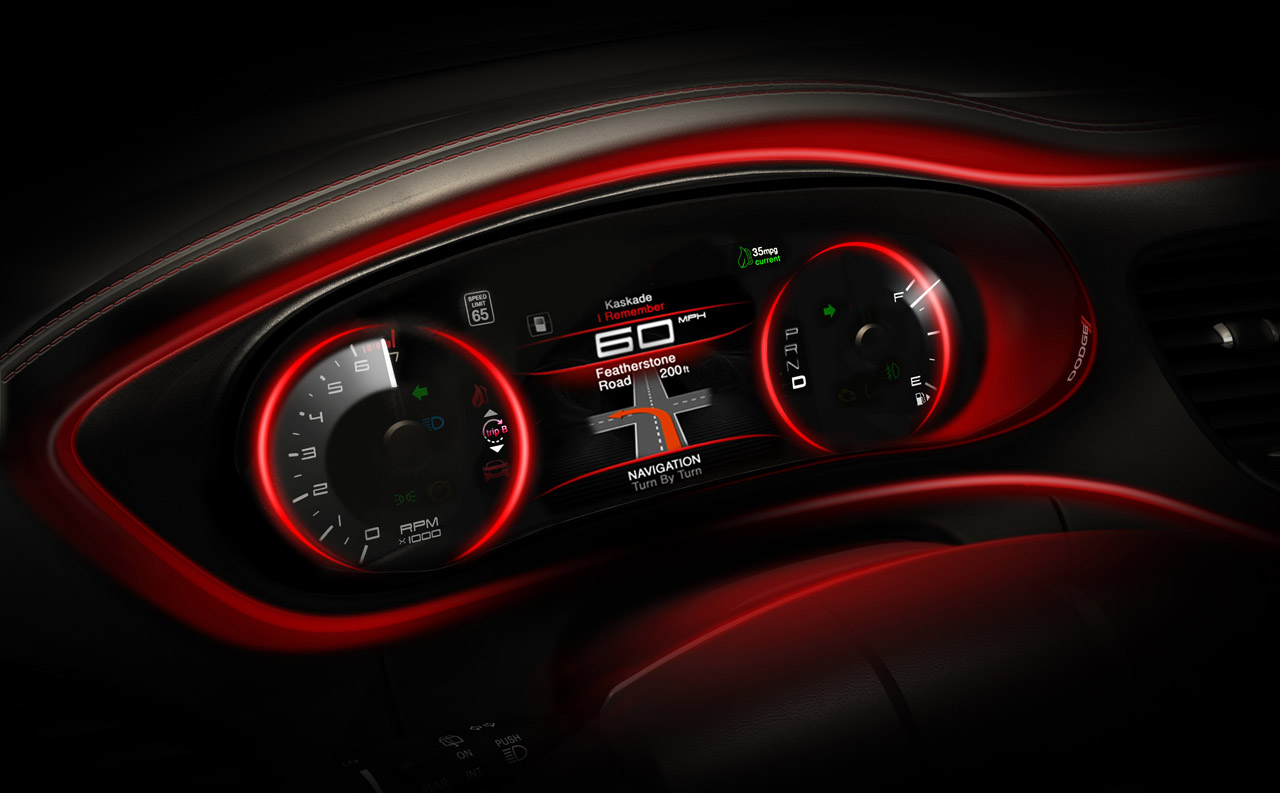 После появления первой информации о новинке, а также тизеров, изображающих экстерьер автомобиля, настало время продемонстрировать фото интерьера. Целиком салон Dodge Dart нам пока не покажут, дабы сохранить интригу, однако увидеть приборы и экран центральной консоли уже можно.