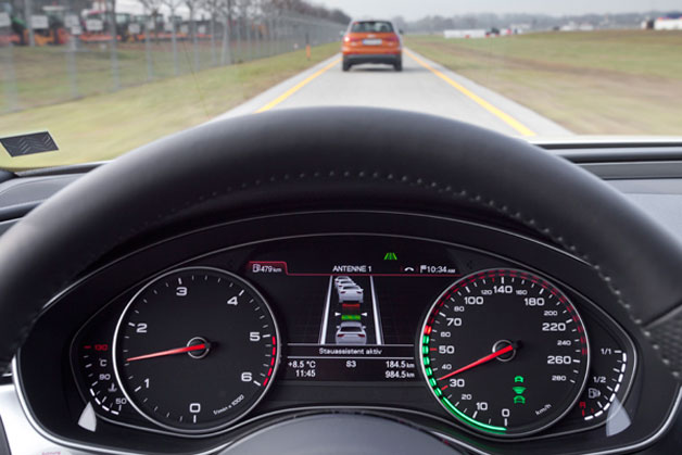 Новая система от Audi совмещает в себе датчики адаптивного круиз-контроля, видеокамеры с широким углом обзора, а также ультразвуковые сенсоры, помогающие определить замедление нескольких впереди идущих автомобилей и вовремя затормозить. Разработчики заявляют, что система TJA способна работать на скоростях до 60 км/ч и фактически представляет собой не только очередную приятную опцию, но и одно из средств безопасности. Что же до установки TJA на серийный автомобиль, то, вероятнее всего, первой систему получит флагманская модель компании - Audi A8. Правда, произойдет это не раньше 2013 г. - именно тогда TJA официально выйдет на рынок.