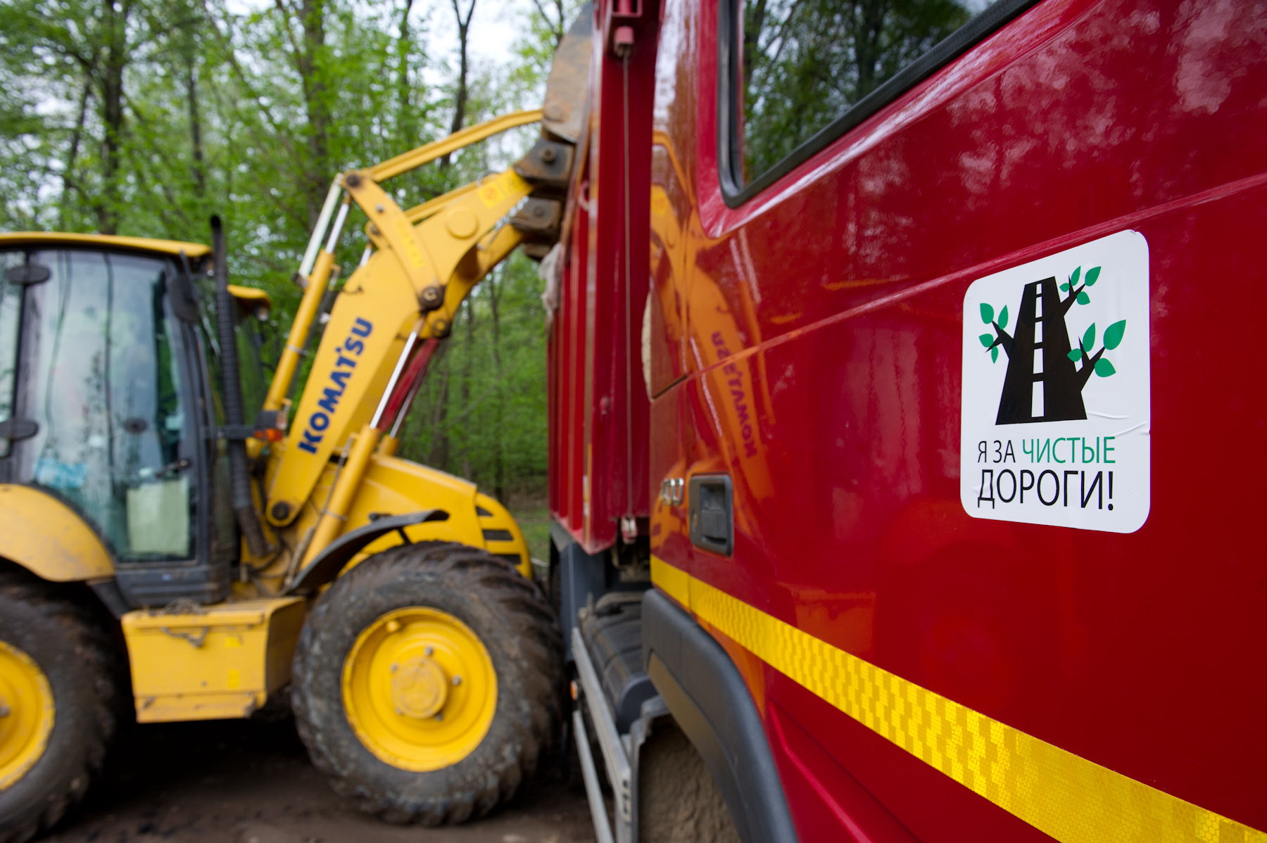 Сотрудники госкомпании «Автодор» 12 мая устроили субботник в лесу на территории Химкинского района возле бывшего завода «Факел».