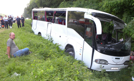 Автобус Scania перевернулся в субботу, 7 июля в 6 часов 30 минут по киевскому времени. Как сообщило агентство УНИАН, это произошло вблизи Чернигова на автодороге между населенными пунктами Топчеевка-Красное. В автобусе находились 2 водителя и 41 пассажир – паломники, которые направлялись из Великих Лук в Свято-Успенскую Почаевскую лавру. В результате ДТП 14 человек погибли, 29 получили травмы разной степени тяжести. Состояние водителя, по данным «Интерфакса», оценивается как нормальное.