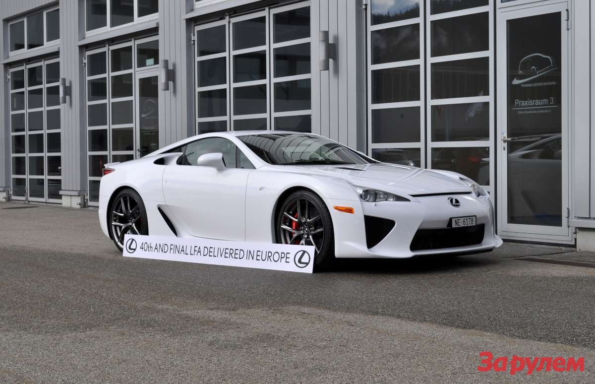 Хотя производство LFA закончилось еще в декабре прошлого года, последние автомобили только сейчас добираются до своих владельцев. Надо сказать, что европейские продажи LFA получились довольно скромными – 40 штук за два года, причем почти половина (15) ушло в Германию с ее безлимитными автобанами. Швейцарцам разогнаться особо негде, но шесть LFA все-таки нашли своих хозяев в этой альпийской стране. Lexus отмечает, что четыре из сорока проданных к Европе LFA пошли в более мощной версии с пакетом Nürburgring.