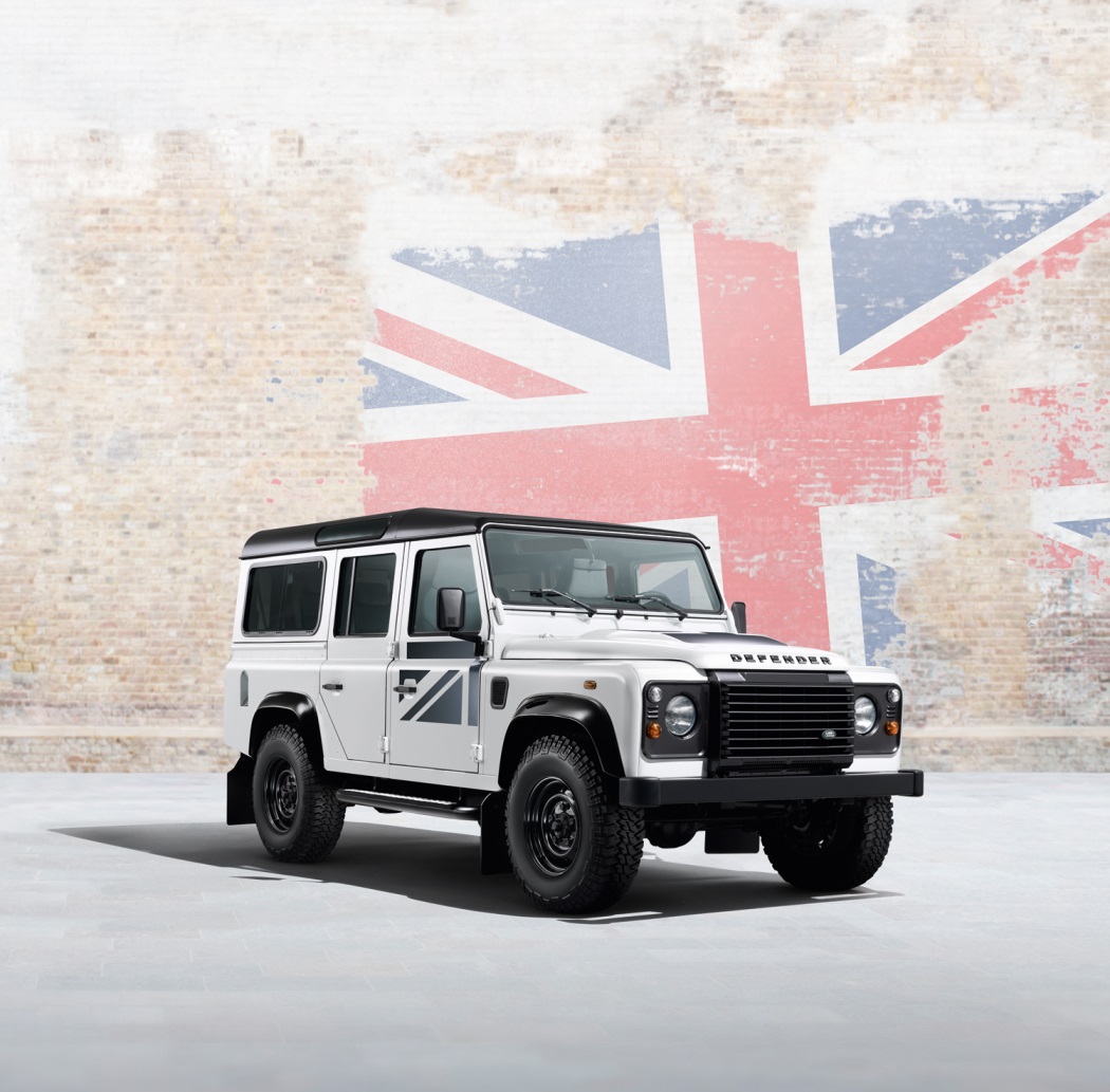 Ограниченная серия Land Rover Defender Union Flag создана на основе двух вариантов колесной базы версии SE (90 и 110) и доступна в цветовых решениях Fuji White (90 SW SE и 110 SW SE) и металлик Santorini Black (110 SW SE). Эта серия отличается декоративными монохромными наклейками Union Flag на капоте и боковых дверях, навевающими мысли о британском флаге. Ограниченную серию оснастят пакетом Black Pack, куда входят стальные диски Heavy Duty с отделкой Gloss Black, цвет Ebony в отделке потолка, черные окантовка фар, решетка радиатора, контрастная крыша, колесные арки и передняя панель, тонировка стекол задних дверей и надпись на капоте, выполненная в черном цвете.