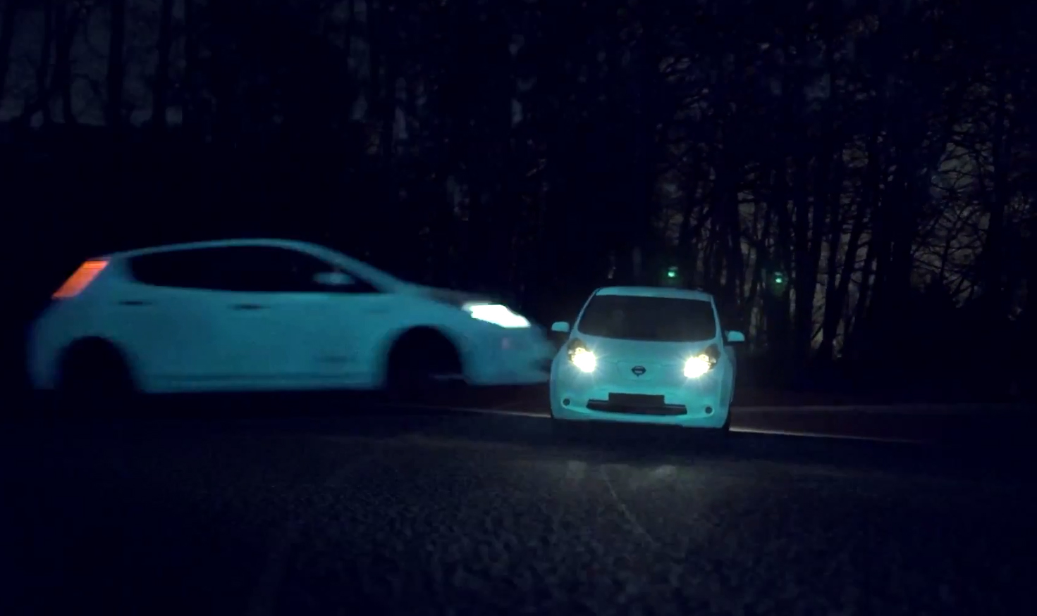 Nissan Leaf засветился в темноте (ВИДЕО)