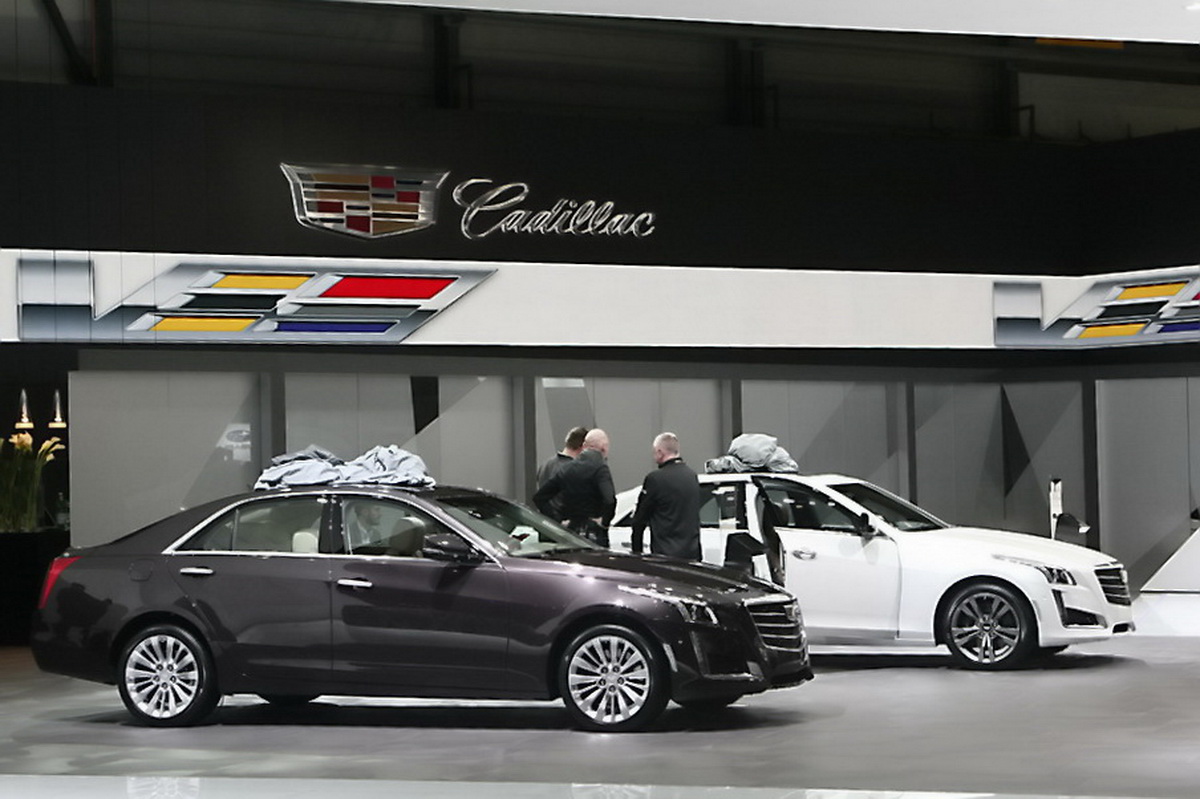 На стенде Cadillac в комплексе Palexpo сразу два «шоу-стоппера»: готовящийся выйти на европейские рынки ATS-V, оснащенный двигателем с двойным турбонаддувом мощностью 460 л.с. (в американской спецификации), и 650-сильный CTS-V.