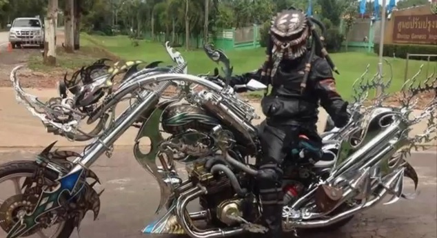 Таиландский байкер — поклонник фильмов Predator («Хищник»), пугает местных автомобилистов, выезжая на дороги в полном прикиде киношного монстра, восседая на кастомном чоппере, который также оформлен в стилистике хищника.