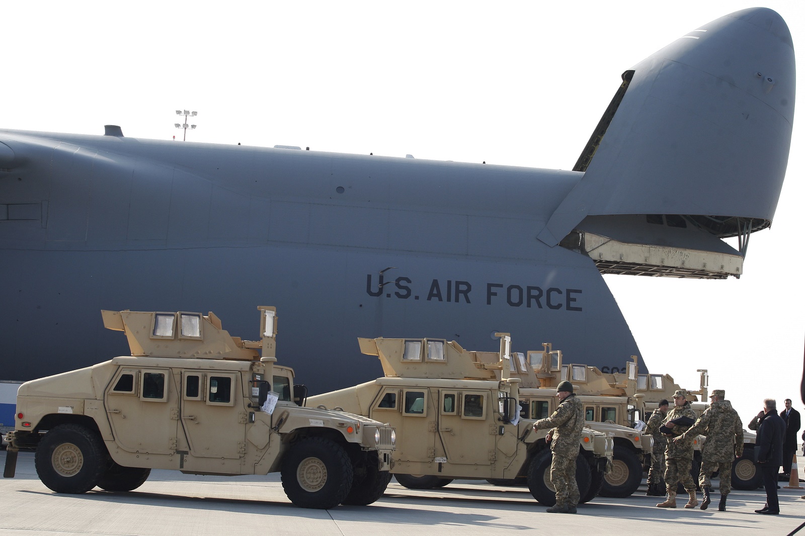Пресс-служба президента Украины Петра Порошенко сообщила о планах США предоставить Украине 230 автомобилей HMMWV – High Mobility Multipurpose Wheeled Vehicle (Humvee), из которых 30 машин оснащены усиленной броней. Как сообщает ТАСС, первая партия из 10 авто с повышенной бронезащитой была доставлена на Украину по воздуху на текущей неделе. Восемь Humvee из первой партии переданы 95-й аэромобильной бригаде, еще две – спецподразделениям Службы безопасности Украины.