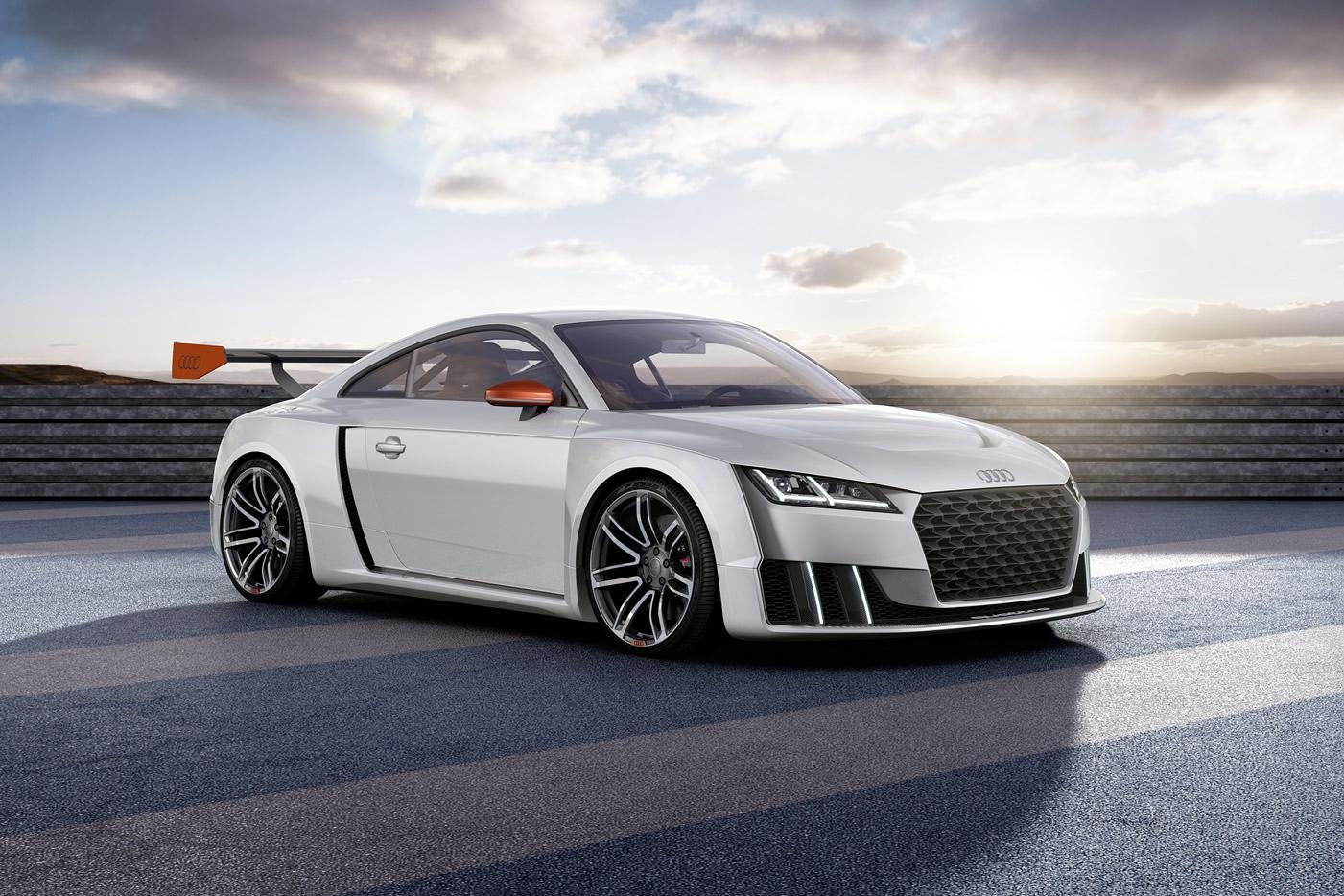 Начнем с наиболее эпатажной машины – Audi TT clubsport turbo. Это новая «тэ-тэшка» с гоночным оборудованием, широким обвесом в стиле раллийных легенд Audi прошлого века и необычным мотором. Под капотом здесь поперечно установлен знакомый пятицилиндровый турбодвигатель 2.5 TFSI, но дополненный 48-вольтовым электрокомпрессором, «подхватывающим» на низких оборотах. Отдача феноменальная – 600 л.с. и 650 Нм при 3000-7000 об/мин. Однако главное не это. Инженеры утверждают, что экспериментальный TT при динамичном старте за первые 2,5 с преодолевает 16 м, тогда как аналогичный автомобиль без технологии «electric biturbo» прошел бы за то же время всего 10 м. Разница – корпус-полтора!