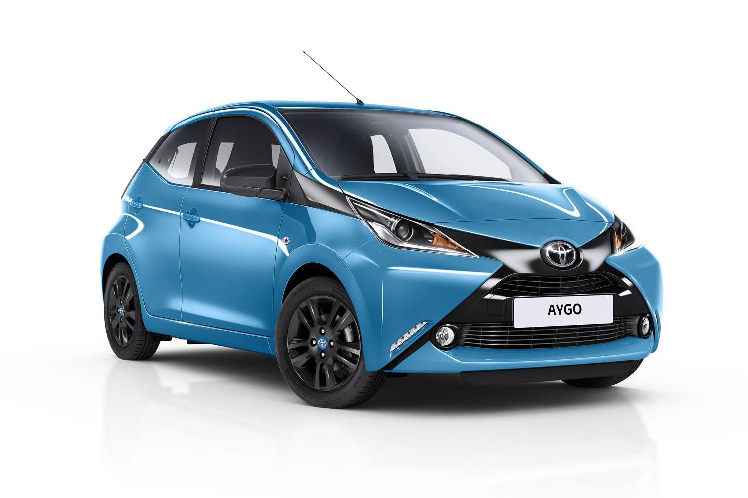 Главное нововведение для 2015 Toyota Aygo — комплектация x-cite. Она включает в себя цветовую схему Cyan Splash с контрастным экстерьером и интерьером. Ярко-голубой кузов оттеняют черные передние стойки и крыша, а также декоративные вставки блестящего черного цвета и зачерненные диски 15-дюймовых колес. Та же гамма соблюдается и в салоне: голубая обивка и черные детали. Кроме того, в декоре прибавилось хрома и по-новому оформлена рукоять рычага КП.