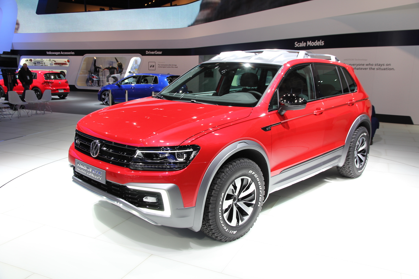 Тем не менее, чтобы стенд немецкой фирмы не выглядел на автосалоне в Детройте блекло, специалисты VW оперативно освежили показанный во Франкфурте кроссовер Tiguan GTE Concept. В его недрах – гибридная силовая установка совокупной отдачей в 221 л.с. Расположенная под полом багажника литий-ионная АКБ емкостью 12,3 кВт·ч позволяет машине проехать 32 км исключительно в электрическом режиме, затем в работу включится бензиновый мотор 1.4 TSI, состыкованной с 6-ступенчатой коробкой DSG.