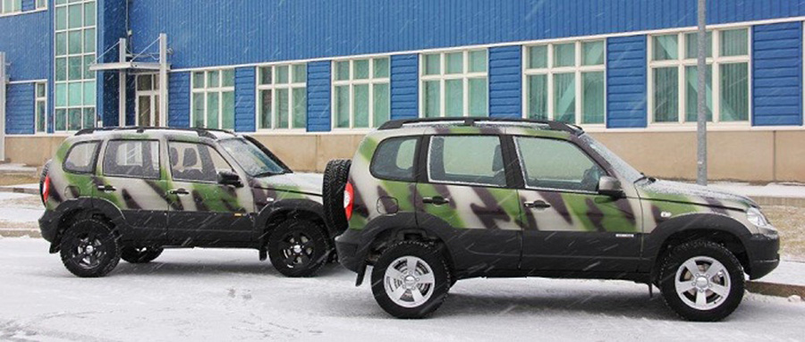 Идя навстречу пожеланиям покупателей, GM-АВТОВАЗ выпустил ограниченную партию автомобилей, выполненных в цвете «камуфляж». Новый цвет создан с помощью комбинации эмалей «аустер», «тундра» и «дикая слива» (все они используются в серийном производстве). Шеви Нива в комплектации LE обойдется в 629 000 рублей, за LE+ придется выложить 672 000 рублей.