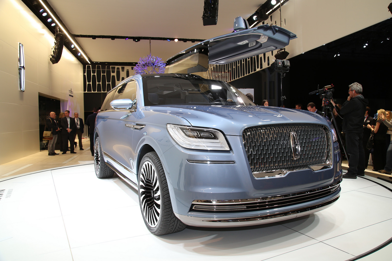 Очень похоже, что новый SUV скрывает свою истинную сущность дежурной формулировкой «концепткар». Вряд ли ошибемся, предположив, что дебютант — фактически прототип и товарный вседорожник будет отличаться от него разве что деталями. Кстати, шоу-кар Continental так и не пожелал значительно меняться — лишь позволил дизайнерам слегка видоизменить передок и допустил стилистов до интерьера. По тому же пути наверняка пойдет громила-SUV. Большой Lincoln прошел путь от близкого стилистического родства с соплатформенным Ford Expedition до ненавязчивой оригинальности с намеками на модели прошлого. Что мы видим теперь? Перед нами самый «легковесный» Navigator за всю историю модели, насчитывающую три генерации. Передок в новом фирменном стиле, вычищенные от деталировки бока и корма, которая в определенных ракурсах подозрительно напоминает… да-да, Range Rover! Тот же наклон крыши, заваленные стойки, замаскированные с остеклением. Выступающая на боковину секция задней оптики и протянувшаяся от нее подшамповка лишь усиливают ассоциацию. А ведь и Continental критиковали за некоторую схожесть с Bentley Continental Flying Spur…
