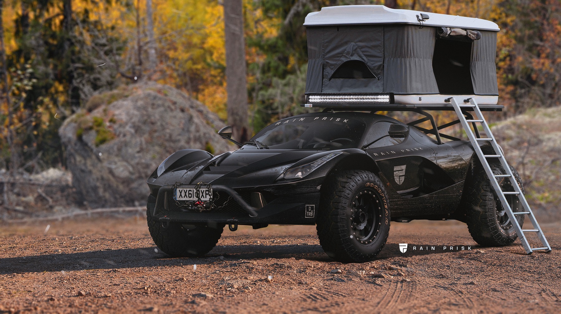 Перед вами фантазия на тему «отшельника», построенного из… гиперкара Ferrari LaFerrari с бензоэлектрической силовой установкой совокупной мощностью 963 л.с. Асфальтовый монстр и прямой конкурент таких шедевров, как McLaren P1 и Porsche 918 Spyder, в дизайнерских грезах получил длинноходную энергоемкую подвеску, а также «мясистые» шины на дисках с бедлоками. Интересно, что суперавтомобиль обвивают защитные дуги, на которые можно закрепить палатку. Вот только вряд ли в данном случае возможно длительное автономное существование, учитывая «энергозатраты» итальянского монстра.
