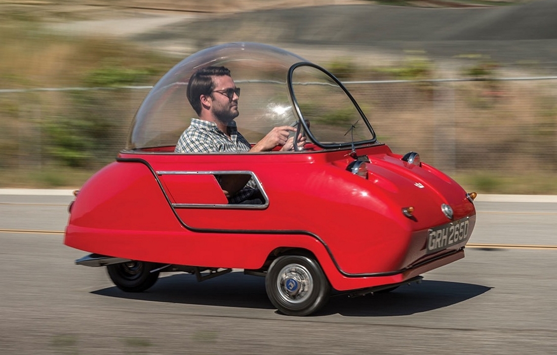 Британская одноместная малолитражка Peel P50 считается самым маленьким серийным автомобилем в мире, а Peel Trident – ее ближайший брат, с более элегантным кузовом, исполненным в аэрокосмическом стиле. Один из немногих выживших экземпляров, прошедший реставрацию, выставлен на продажу на аукционе RM Sotheby’s.