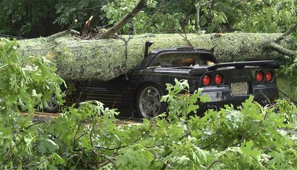 А потом произошло самое неприятное. На дорестайлинговый Chevrolet Corvette C4 рухнуло дерево, пугающее своими размерами. Оно играючи проломило крышу и оказалось в салоне. В такой ситуации человек, казалось бы, не мог выжить, но парню повезло. Голова, конечно, пострадала и на нее наложили 22 шва, но сам Диксон жив. Как он уцелел? Полагаем, свою роль могла сыграть достаточно низкая посадка в Корвете и, вероятно, не слишком высокий рост героя плюс, конечно же, стечение обстоятельств.