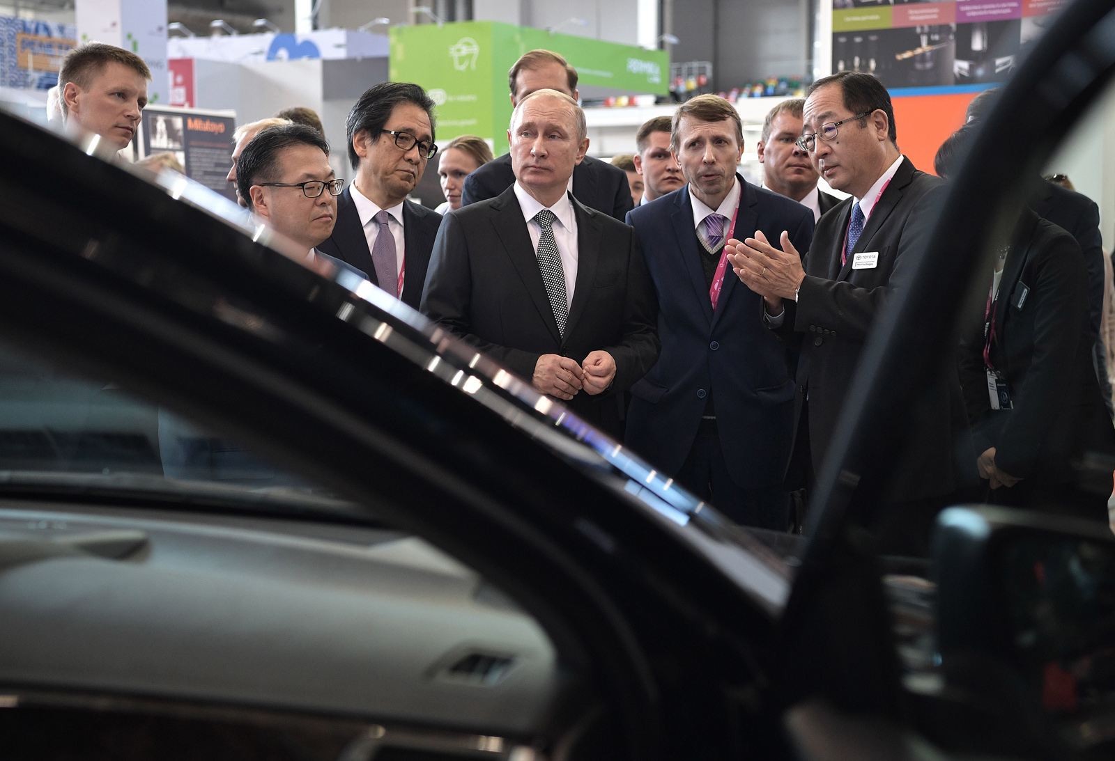 Модели российского производства также продемонстрировали президенту представители компании Toyota. Напомним, компания выпускает на заводе в Санкт-Петербурге кроссовер RAV4 и представительский седан Camry.
